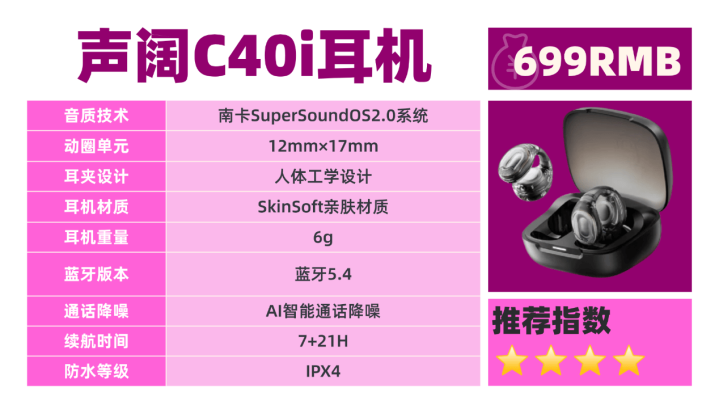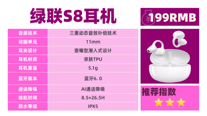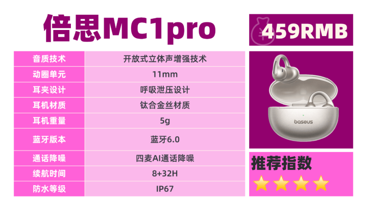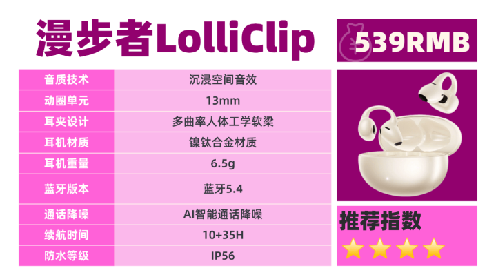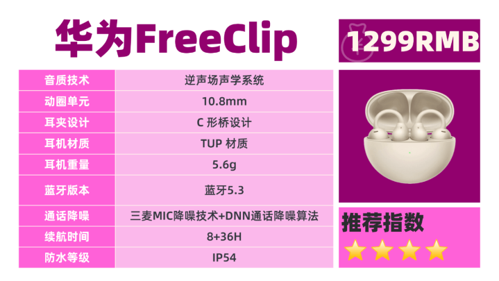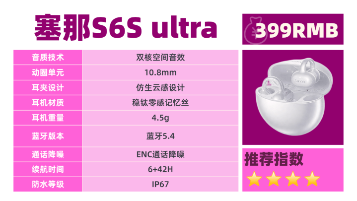 推荐理由:极致性价比首选,音质佩戴体验不输大牌旗舰级,性能天花板!