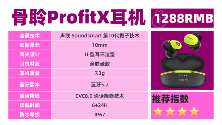 推荐理由:耳机综合音质表现好,佩戴稳固