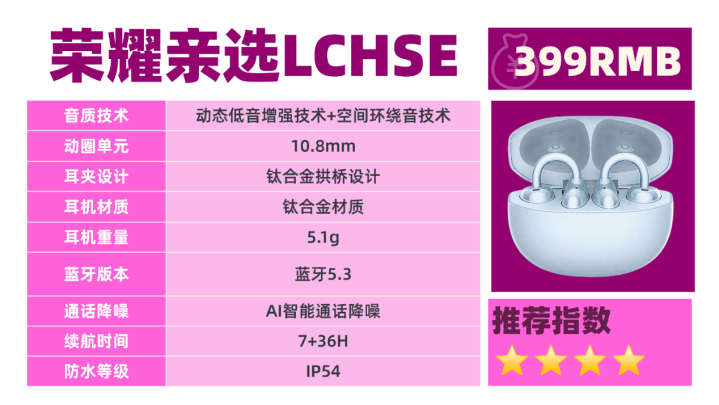9. 荣 耀亲 选 LCH SE耳夹式耳机