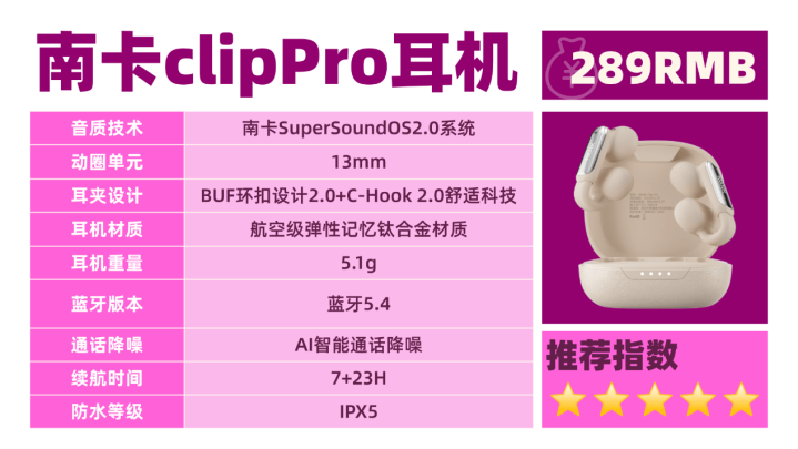 耳夹式耳机哪个音质最好?1.南卡clippro耳夹式耳机